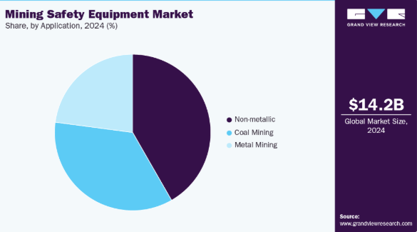 非金属セグメントは、建設・肥料・工業プロセスに不可欠な石灰石、リン酸塩、石膏、カリウムなどの鉱物採掘増加により、2024年に市場を支配し41.7%のシェアを占めた。生産拡大に伴い、高度なPPE(個人用保護具)、粉塵抑制システム、呼吸器保護具、監視装置の需要が高まっている。安全規制の強化と労働者の健康リスクに対する意識の高まりが、この分野における現代的な安全ソリューションの導入をさらに加速させている。