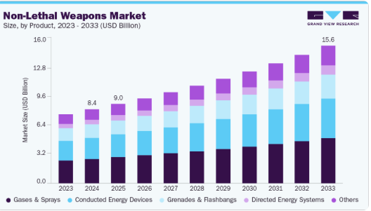 世界各国の政府は、防衛近代化プログラムや法執行機関の強化を通じて非致死性兵器の導入を積極的に推進している。暴動鎮圧、国境警備、平和維持活動への資金提供などの取り組みには、これらのシステムに関する規定が含まれている。国際協力プログラムでは、安全保障支援の一環として開発途上国へ低致死性技術を供給することが多い。致死性装備の輸出規制が代替手段の利用をさらに後押ししている。米国、英国、インド、中国などの国々は、非致死性システムを標準的な警察装備に組み込んでいる。