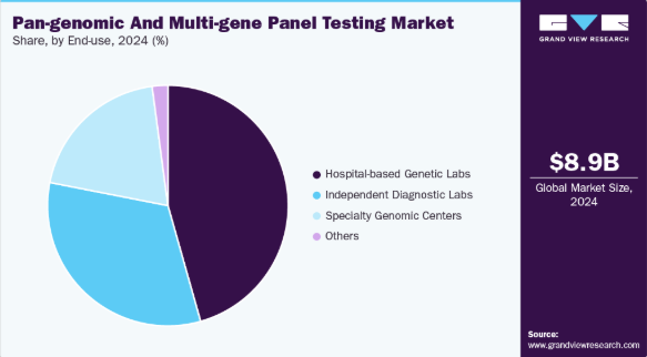 2024年、病院内遺伝子検査室は全ゲノム・マルチ遺伝子パネル検査市場を支配し、45.62%のシェアを占めた。病院内遺伝子検査室は臨床ゲノミクスの基盤であり続け、大規模三次医療センター、学術医療機関、統合医療システムの検査拠点として機能している。これらの検査室は、患者病歴への直接アクセス、多職種チーム、即時的な臨床判断経路の恩恵を受けており、より迅速な解釈と個別化された報告を可能にしています。小児集中治療、腫瘍学検査、複雑な多系統疾患の管理においてエクソーム検査やゲノム検査が標準化されるにつれ、ゲノム技術の利用は急速に拡大しています。病院はまた、外部委託コストの削減、結果報告時間の短縮、電子健康記録へのゲノムデータ統合を目的として、院内検査能力の開発を強化しています。国家医療システムが院内ゲノムインフラと人材育成に投資する中、病院内検査室は特に新生児スクリーニング、遺伝性疾患評価、腫瘍学分野において、精密医療の主流化においてさらに重要な役割を担うと予想される。