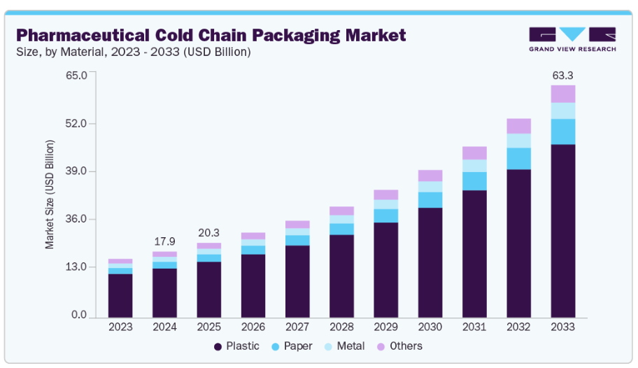 製薬業界のグローバル化に伴い、製品は一つの地域で製造され、複数の大陸に流通されるケースが増加しております。これにより、長時間の輸送、多様な気候条件、複数の取扱ポイントに耐え得る信頼性の高いコールドチェーン包装ソリューションの必要性が一層高まっております。例えば、ジェネリック医薬品やワクチンの主要輸出国であるインドの製薬メーカーは、北米・欧州・アフリカ市場へ製品を届けるため、高性能なコールドチェーン包装に大きく依存しています。国際貿易量、特に新興市場における取引量の拡大に伴い、真空断熱パネル、スマートコンテナ、リアルタイム監視システムなどの先進的なコールドチェーン包装技術への需要が急増すると予想されます。