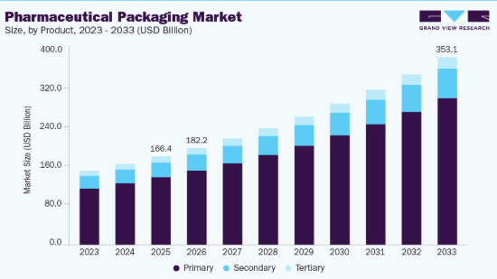 医薬品包装は、一次、二次、三次包装に分類されます。2026年には、一次包装セグメントが市場の大部分を占めました。ボトル、チューブ、ブリスターパックなどの一次包装は、医薬品と直接接触し、医薬品を包み込み、汚染から保護します。さらに、医薬品の内容物の分注や投与にも関与することが多いです。包装メーカー各社は、開けやすいキャップや、適切なタイミングで適切な用量を供給する分注システムの導入に注力しており、これらは高齢者の服薬管理を支援する可能性があります。