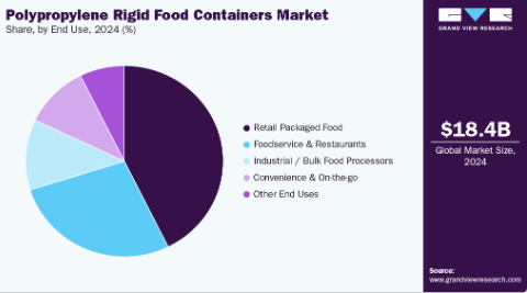 ポリプロピレン製テイクアウト容器は、加熱時の構造的完全性を維持し、ソースや油分の多い食品からの漏れに耐え、冷蔵と再加熱の両方に適している。耐久性、積み重ね可能性、改ざん防止設計が重要な、急成長中のデリバリーおよびクイックサービスレストラン(QSR)エコシステムにおいて、これらの容器は不可欠である。