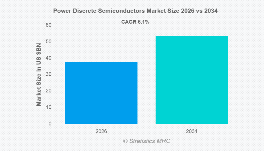 37 世界のパワーディスクリート半導体市場見通し、通信・データセンター別(2025-2034年)(百万ドル)