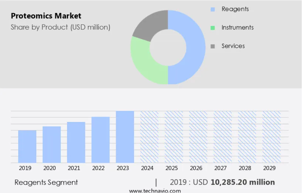 プロテオミクス市場調査レポートは、2025年から2029年の期間における「10億米ドル」単位での予測と推定、および2019年から2023年の期間における以下のセグメントの過去のデータを含む包括的なデータ(地域別セグメント分析)を提供しています。