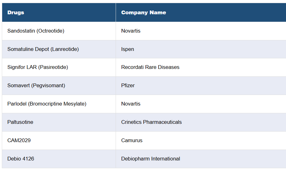 本レポートでは、現在市販されている先端巨大症治療薬および後期開発段階のパイプライン薬剤についても詳細な分析を提供しております。
