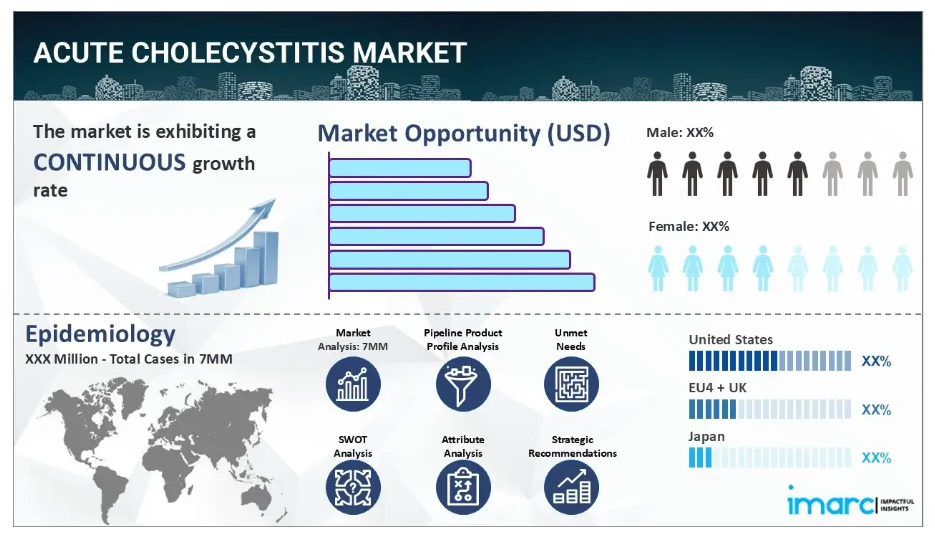 IMARC Groupの新報告書は、米国、EU5(ドイツ、スペイン、イタリア、フランス、英国)、および日本における急性胆嚢炎市場について包括的な分析を提供しております。これには、治療実践、市場流通中および開発中の薬剤、個別療法のシェア、7大市場における市場実績、主要企業とその薬剤の市場実績などが含まれます。本報告書では、7大市場における現在および将来の患者数についても提示しております。