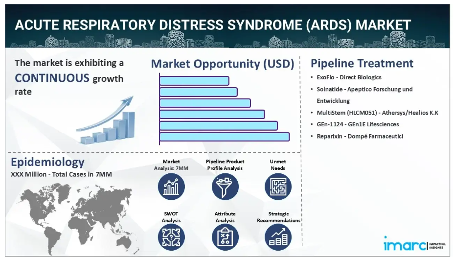IMARC Groupの新報告書は、米国、EU4(ドイツ、スペイン、イタリア、フランス)、英国、日本における急性呼吸窮迫症候群市場について包括的な分析を提供します。これには、治療実践、市場流通中および開発中の薬剤、個別療法のシェア、7大市場における市場動向、主要企業とその薬剤の市場実績などが含まれます。本レポートではさらに、7大市場における現在および将来の患者数についても提示しています。
