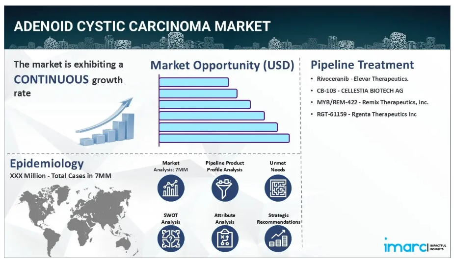 IMARC社の新報告書「腺様嚢胞癌市場:疫学、産業動向、シェア、規模、成長、機会、および2025-2035年予測」において、腺様嚢胞癌市場が包括的に分析されました。腺様嚢胞癌(ACC)とは、主に唾液腺に発生する稀で成長の遅い悪性腫瘍を指します。ただし、乳房、気管、涙腺など他の部位にも発生する可能性があります。この疾患は、緻密な線維組織に囲まれた腺様および嚢胞様構造を形成する独特の増殖パターンが特徴です。