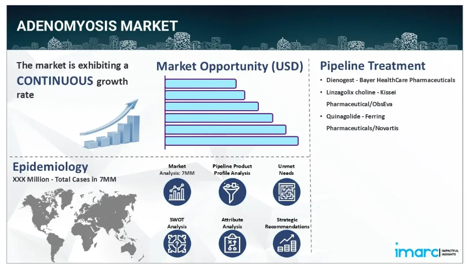 IMARC Groupの新報告書は、米国、EU5(ドイツ、スペイン、イタリア、フランス、英国)、および日本における腺筋症市場について包括的な分析を提供しております。これには、治療実践、市場流通中および開発中の薬剤、個別療法のシェア、7大市場における市場動向、主要企業とその薬剤の市場実績などが含まれます。本報告書では、7大市場における現在および将来の患者数についても提示しております。