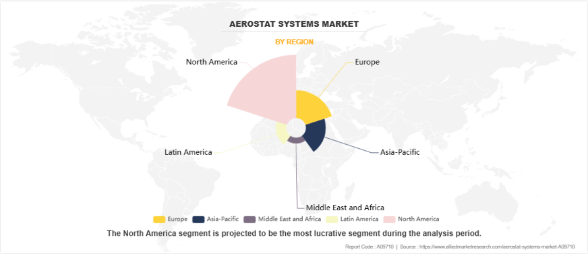 地域別では、北米地域が2023年に世界のエアロスタットシステム産業を支配し、エアロスタットシステム市場予測期間中も支配的であり続けると思われます。これは、主要なエアロスタットメーカーの存在、高い防衛費、米国政府による高度な監視システムへの投資の増加に起因しています。北米は、国境警備、災害管理、対ドローン技術に重点を置いているため、エアロスタットの採用が加速しています。さらに、この地域の強力な技術インフラは、AIを搭載したペイロードやIoTシステムのような高度なコンポーネントの統合をサポートしています。継続的な研究開発イニシアティブと軍事組織とのコラボレーションは、北米市場のリーダーシップをさらに強化します。