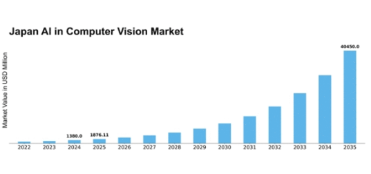 日本のAIコンピュータービジョン市場は、AI技術の進歩と自動化需要の増加を背景に、2024年から2035年にかけて35.95%のCAGRで成長すると予測されています。
