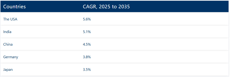 以下のセクションでは、各国におけるエアリフトポンプ業界の分析を扱う。北米、アジア太平洋、ヨーロッパなど世界の主要地域における主要国の需要分析では、北米では米国が2035年までに72.7%の価値シェアを維持し、引き続き主導的立場にあると予測される。南アジアでは、インドが2035年までに5.1%のCAGR(年平均成長率)を記録すると見込まれている。国別 CAGR(2025年~2035年)米国 5.6%インド 5.1%中国 4.5%ドイツ 3.8%日本 3.5%