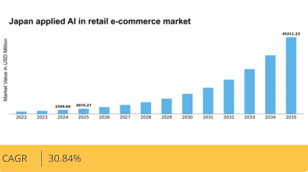 日本の小売・Eコマース向け応用AI市場は、技術進歩とパーソナライズされた体験を求める消費者需要に牽引され、2025年から2035年にかけて30.84%のCAGRで成長すると予測される。