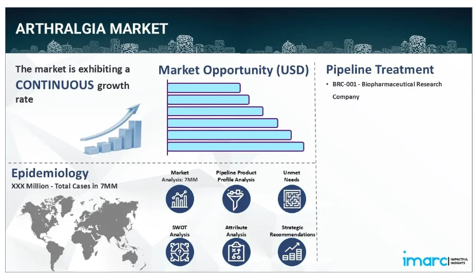 IMARCグループの新たな報告書は、米国、EU4(ドイツ、スペイン、イタリア、フランス)、英国、日本における関節痛市場の詳細な分析を提供します。これには、治療実践、市場流通中および開発中の薬剤、個別療法のシェア、主要7市場における市場動向、主要企業とその薬剤の市場実績などが含まれます。本報告書はまた、主要7市場における現在および将来の患者層についても提示しています。本報告書によれば、米国は関節痛の患者数が最も多く、治療市場としても最大規模を占めています。さらに、現行の治療実践/アルゴリズム、市場推進要因、課題、機会、償還状況、未充足医療ニーズなども本報告書で提供されています。本レポートは、メーカー、投資家、ビジネス戦略家、研究者、コンサルタント、ならびに関節痛市場に関与している、または参入を計画している全ての方にとって必読の資料です。