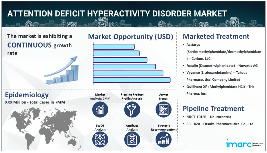 IMARC Groupの新報告書は、米国、EU4(ドイツ、スペイン、イタリア、フランス)、英国、日本における注意欠陥・多動性障害(ADHD)市場について包括的な分析を提供します。これには、治療実践、市場流通中および開発中の薬剤、個別療法のシェア、7大市場における市場動向、主要企業とその薬剤の市場実績などが含まれます。本レポートではさらに、7大市場における現在および将来の患者数についても提示しております。レポートによれば、米国はADHD患者数が最も多く、治療市場としても最大規模を占めております。さらに、現在の治療実践/アルゴリズム、市場推進要因、課題、機会、償還シナリオ、未充足医療ニーズなども本報告書に記載されております。本報告書は、製造業者、投資家、ビジネス戦略家、研究者、コンサルタント、および何らかの形で注意欠陥・多動性障害(ADHD)市場に関与している、あるいは参入を計画している全ての方にとって必読の資料です。