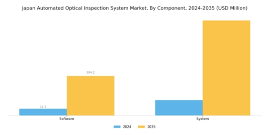 日本自動光学検査システム市場のコンポーネントセグメントは、自動光学検査システムの機能性と有効性に寄与する必須要素を含む、業界全体における重要な側面を表している。このセグメントには、ソフトウェアやシステムコンポーネントなどのカテゴリーが含まれ、いずれも製造における自動化された品質管理を促進する上で極めて重要な役割を果たしています。日本の自動光学検査システム市場は、特に電子機器、自動車、医薬品などの分野において、高品質な製造プロセスへの需要の高まりに牽引され、著しい成長を見せています。