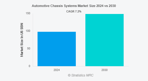 Stratistics MRCによると、自動車用シャーシシステムの世界市場は2024年に978億8000万ドルを占め、予測期間中の年平均成長率は7.2%で、2030年には1485億4000万ドルに達する見込みです。自動車シャシーシステムは、自動車の総合的な性能、安全性、快適性において重要な役割を果たします。これらのシステムは、自動車を構造的に支え、安定性と長寿命を保証すると同時に、ステアリング、ブレーキ、サスペンション・システムなどの重要な部品の統合を容易にすることを目的としています。車両の土台となるシャシーは、荷重や力をボディ全体に分散し、路面状況による乗員への影響を軽減します。さらに、最新のシャシーシステムは、素材や設計の改善により、より軽く、より強く、より効率的になっています。メーカーが次世代車向けにこれらのプラットフォームの最適化に努める中、自動車シャシーシステムの大きな進歩は、電気自動車や自律走行車の技術革新によっても推進されています。