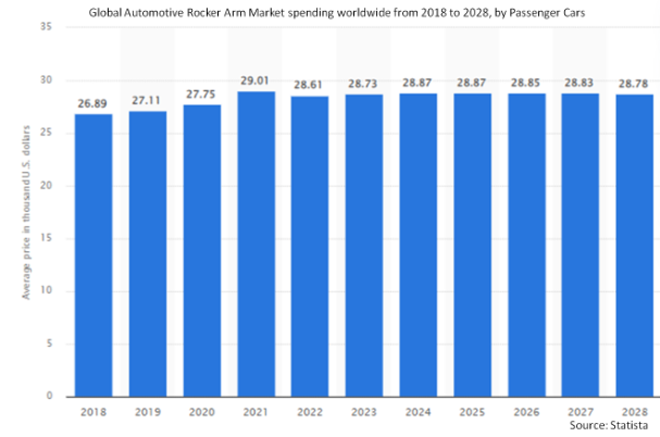 ロッカーアームやその他の自動車部品は、先進国市場と新興国市場の両方により、世界の自動車生産台数が増加するにつれて需要が高まると予想されます。ロッカーアームは、特に内燃エンジン(ICE)を搭載した自動車の大部分で、バルブ操作を制御するために必要です。さらに、低燃費エンジンの人気の高まりや、北米や欧州などでの排ガス規制の強化により、自動車メーカーは、最適な動作のために高性能ロッカーアームに依存することが多い、高度なエンジン技術への投資を余儀なくされています。