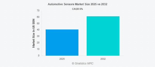 Stratistics MRCによると、自動車用センサの世界市場は2025年に407.8億ドルを占め、予測期間中の年平均成長率は6.0%で、2032年には613.2億ドルに達する見込みです。自動車用センサーは、今日の自動車の機能性、安全性、効率性を高める重要な部品です。センサーは、機械的、化学的、環境的条件の変化を検出・測定し、車両の制御システムに正確な情報を送信します。これらのデバイスは、エンジン・モニタリング、排ガス制御、タイヤ空気圧チェック、燃料最適化、高度運転支援技術などのアプリケーションをサポートします。電気自動車、自律走行システム、より厳しい安全基準の存在感が高まるにつれ、自動車用センサーの需要は急速に拡大しています。さらに、自動車の排出ガスや交通安全に関する政府規制もこの増加傾向に寄与しています。小型化や接続性など、センサー技術の進歩が業界の進歩を促進しています。