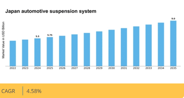 日本の自動車サスペンションシステム市場は、技術進歩と自動車生産台数の増加を背景に、2024年から2035年にかけて年平均成長率(CAGR)4.58%で成長すると予測される。