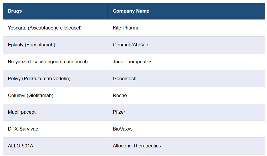 本レポートでは、現在販売されているB細胞リンパ腫治療薬および後期開発段階のパイプライン薬剤についても詳細な分析を提供しております。