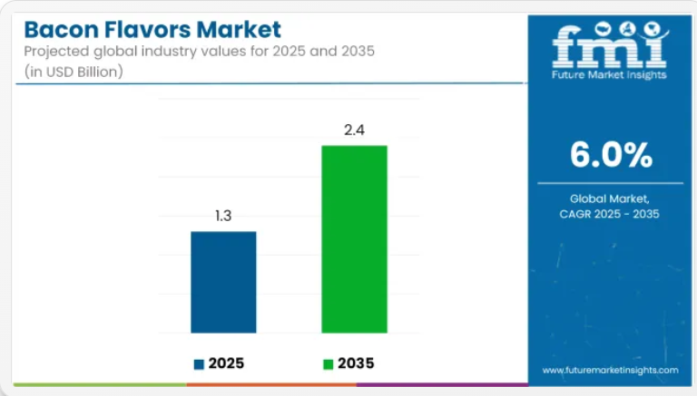 ベーコン風味の世界市場は、今後10年間で大幅な成長が見込まれております。2025年の推定13億米ドルから、2035年までに24億米ドルに達し、年平均成長率(CAGR)は6.0%と予測されております。