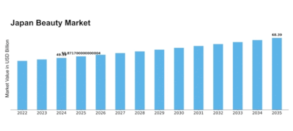 MRFRの分析によると、2024年の日本美容市場規模は493億9000万米ドルと推定された。日本の美容産業は、2025年の508.8億米ドルから2035年までに683.9億米ドルへ成長し、予測期間(2025年~2035年)において年平均成長率(CAGR)3.0%を示すと予測されている。