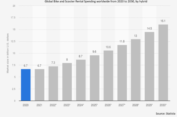 COVID-19の大流行は自転車とスクーターのレンタル市場に大きな影響を与えました。封鎖、移動制限、社会的距離を置く措置により、人々は共有の交通手段を避けるようになり、利用者は激減しました。多くのレンタル会社は経営難に直面し、いくつかの地域では営業が一時的に停止しました。しかし、規制が緩和されるにつれて、社会的に距離を置いた、環境に優しい移動手段へのニーズが高まり、需要は徐々に回復しました。パンデミック後は、ユーザーの信頼を回復し安全を確保するために、消毒プロトコルを強化し、非接触型決済システムを統合することで市場は適応しました。