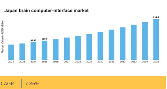 日本の脳コンピュータインターフェース市場は、技術進歩と神経技術応用への需要増加を背景に、2025年から2035年にかけて年平均成長率(CAGR)7.86%で拡大すると予測される。