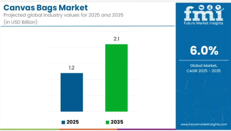 キャンバスバッグ市場は、2025年の12億米ドルから2035年までに21億米ドルへ成長し、予測期間中に6.0%の年平均成長率(CAGR)を記録すると見込まれております。