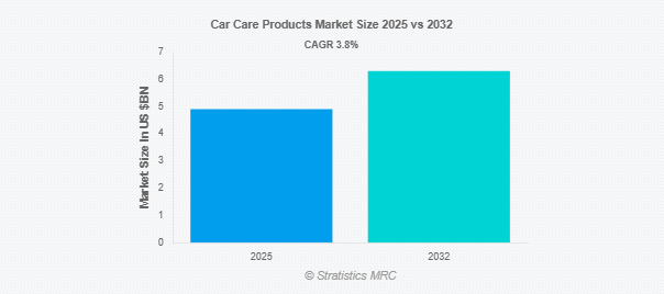 Stratistics MRCによると、カーケア製品の世界市場は2025年に49億ドルを占め、予測期間中の年平均成長率は3.8%で、2032年には63億ドルに達する見込みです。カーケア製品は、自動車のクリーニング、メンテナンス、保護、外観と性能の向上を目的とした専用ソリューションです。カーケア製品には、カーシャンプー、ワックス、ポリッシュなどの外装クリーナーや、室内装飾クリーナー、ダッシュボード保護剤などの内装ケア用品が含まれます。カーケア製品は、塗装を保護し、錆を防止し、車両全体の美観と寿命を維持するのに役立ち、個人用車両と商用車両の両方について、長期間にわたって最適な状態と価値を保証します。