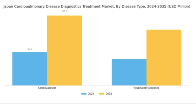 日本の心肺疾患診断治療市場は、疾患タイプセグメントにおいて顕著な多様性と深みを有しており、主に循環器疾患と呼吸器疾患に分類される。このセグメンテーションは、特に高齢化社会と心肺疾患の有病率に寄与する生活習慣の変化を考慮すると、日本における差し迫った健康上の懸念を反映している。心不全や冠動脈疾患を含む心血管疾患は、医療資源に対する大きな負担であり続けています。こうした疾患は、特に高齢者が着実に増加している日本の人口動態の文脈において、患者の転帰を改善するための高度な診断法と治療法が必要です。
