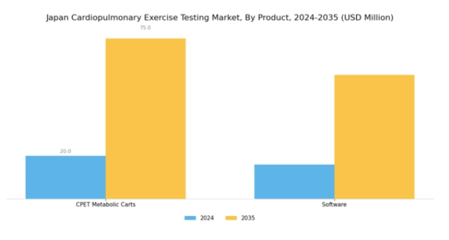日本の心肺運動負荷試験市場における製品セグメントは、主に技術の進歩と患者の健康アウトカムへの注目の高まりによって牽引される多様な状況を示している。このセグメントにおいて、CPET代謝カートは運動中の心血管および肺の反応を正確かつ包括的に評価することを可能にする重要な役割を果たしている。これらのカートは臨床環境において不可欠であり、医療従事者が呼吸器および心血管疾患の患者を効果的に評価することを可能にする。