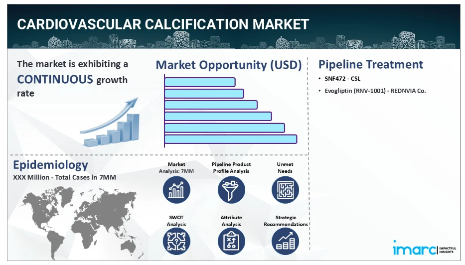 IMARC Groupの新報告書は、米国、EU4(ドイツ、スペイン、イタリア、フランス)、英国、日本における心血管石灰化市場を包括的に分析しております。これには、治療実践、市場流通中および開発中の薬剤、個別療法のシェア、主要7市場における市場動向、主要企業とその薬剤の市場実績などが含まれます。