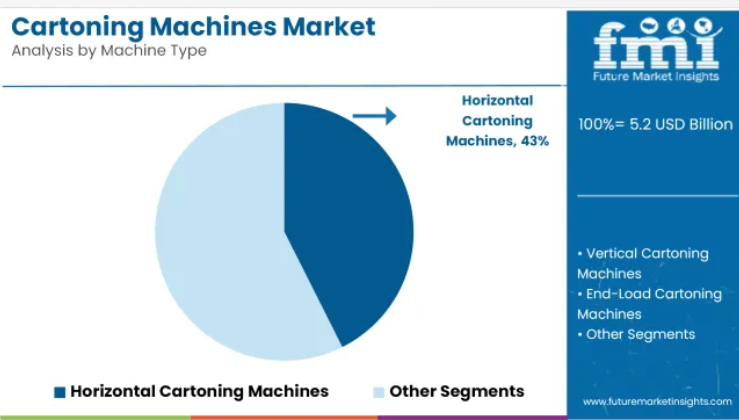高速化においても、カートン品質、フラップの完全性、シール精度が維持されます。乾燥食品、菓子類、医療キット包装での利用拡大により、需要は高水準を維持しています。カスタマイズ可能な供給システムと製品ハンドリングモジュールは、産業固有のニーズに合わせて調整されています。市場リーダー企業は、壊れやすい製品や多成分パッケージを扱うロボット対応水平式機械を導入しています。包装製品の需要増加に伴い、そのシェアは今後も最高水準を維持すると予想されます。