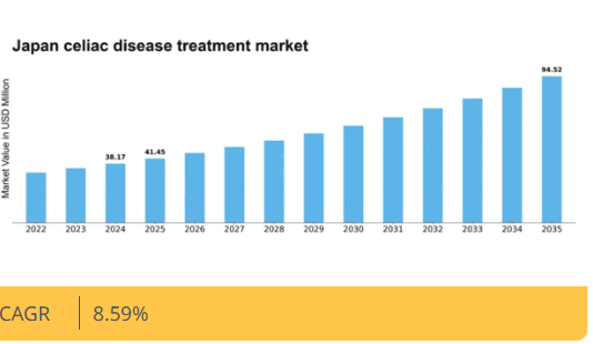 日本のセリアック病治療市場は、認知度向上と革新的治療法により、2024年から2035年にかけて8.59%のCAGRで成長すると予測される。