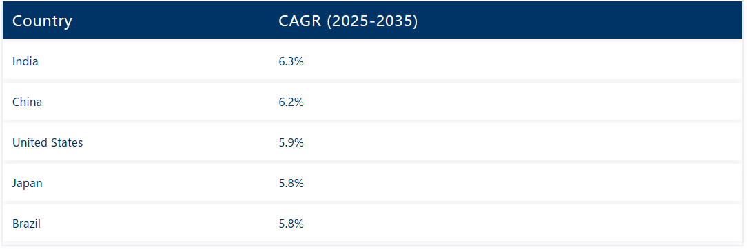 • 図10:地域別グローバル市場前年比成長率比較、2025-2035年