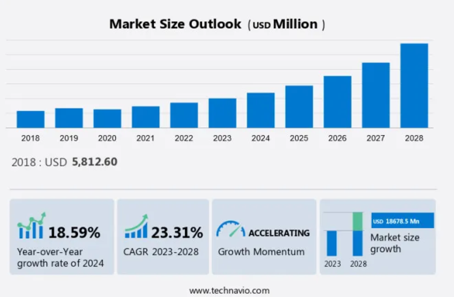 キトサン市場規模は、2023年から2028年の間にCAGR 23.31%で186.8億米ドルの成長が見込まれています。市場成長は、さまざまなエンドユーザー産業における新たな用途、化粧品分野におけるキトサン需要の増加、アジア太平洋地域におけるキトサン需要の大幅な増加など、いくつかの要因に左右されます。これらの要因は、甲殻類の殻に含まれるキチンから生成される天然ポリマーであるキトサンの多用途性と市場潜在力を強調しています。 生物学的適合性や生物分解性といったユニークな特性により、医薬品から農業に至るまで、さまざまな用途で採用が進んでいます。 さらに、キトサンの環境に優しい性質は、多くの産業の持続可能性の目標と一致しており、その魅力をさらに高めています。研究開発の努力が新たな用途の開拓と生産プロセスの改善を継続するにつれ、キトサンは今後数年間、継続的な成長と市場の拡大が見込まれています。また、このレポートには、推進要因、トレンド、課題に関する詳細な分析も含まれています。さらに、このレポートには2018年から2022年の市場の歴史的データも含まれています。