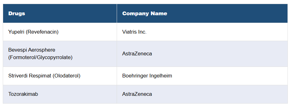 本レポートでは、現在市販されている慢性閉塞性肺疾患治療薬および後期開発段階のパイプライン医薬品についても詳細な分析を提供しております。