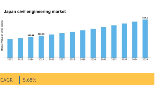 日本の土木市場は、インフラ投資と技術進歩に牽引され成長が見込まれる。