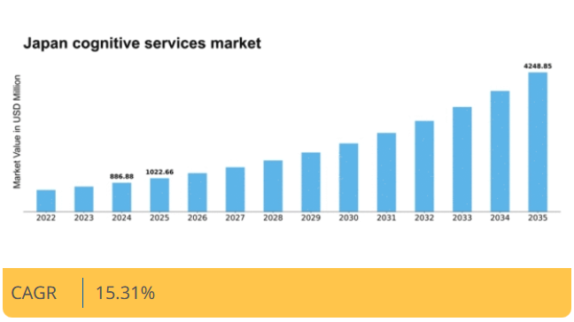 日本のコグニティブサービス市場は、AI技術の進歩、自動化の進展、データ分析需要の高まりを背景に、2025年から2035年にかけて年平均成長率(CAGR)15.31%で成長すると予測される。