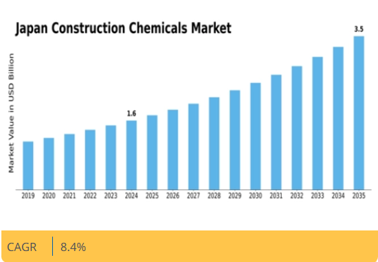 日本の建設化学品市場は、都市化、インフラ開発、持続可能性への取り組みを原動力として、2024年から2035年にかけて8.4%のCAGRで成長すると予測されています。