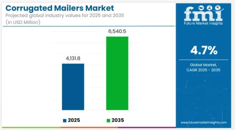 段ボール製メール便市場は、2025年の41億米ドルから2035年までに65億米ドルへ成長し、予測期間中に4.7%の年平均成長率(CAGR)を記録すると見込まれております。