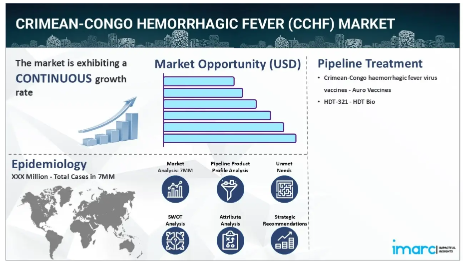 IMARC Groupの新報告書は、米国、EU5(ドイツ、スペイン、イタリア、フランス、英国)、および日本におけるクリミア・コンゴ出血熱(CCHF)市場について、包括的な分析を提供しております。これには、治療実践、市場流通中および開発中の薬剤、個別療法のシェア、7大市場における市場動向、主要企業とその薬剤の市場実績などが含まれます。本レポートではさらに、7大市場における現在および将来の患者数についても提示しております。