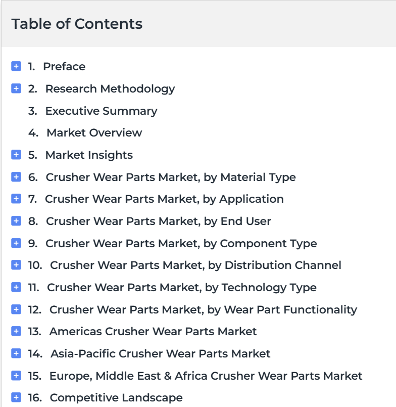この調査レポートは、クラッシャー摩耗部品市場のさまざまな重要な側面に関する貴重な洞察を提供しています。