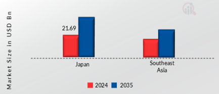 - 日本及び東南アジアのデータセンター市場、地域別、2019年~2032年(10億米ドル)
