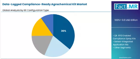 キットの構成別では、事前校正済みの薬剤+デジタルログキットが36%のシェアを占め、首位を維持しています。コンプライアンスの主な推進要因としては、政府および規制当局による義務付けが34%を占めており、主要な農薬の種類としては、作物保護用農薬が39%の市場シェアを占めています。