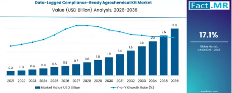 世界のデータ記録機能付き・コンプライアンス対応農薬キット市場は、2036年までに29億8,000万米ドルに達すると予測されています。同市場は2026年に6億2,000万米ドルと評価されており、予測期間中は年平均成長率(CAGR)17.1%で拡大する見込みです。
