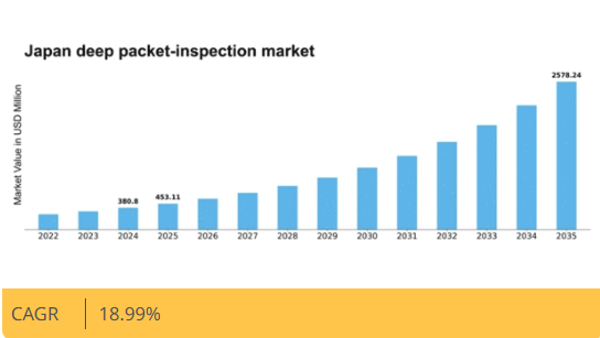 日本のディープパケットインスペクション市場は、サイバーセキュリティ脅威の増加とネットワーク最適化への需要に牽引され、2024年から2035年にかけて18.99%のCAGRで成長すると予測されています。