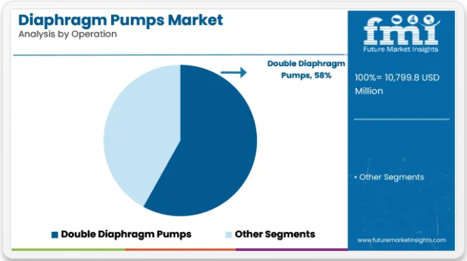 二重ダイヤフラムポンプは2025年に世界の市場シェアの58%を占め、2035年まで年平均成長率(CAGR)6.7%で成長すると予測される。その採用は、過酷な用途における腐食性・研磨性・高固形分含有流体の処理における優れた性能に起因する。